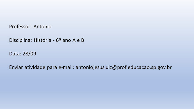 Atividade História 6 A e B- Professor Antonio - 28/09